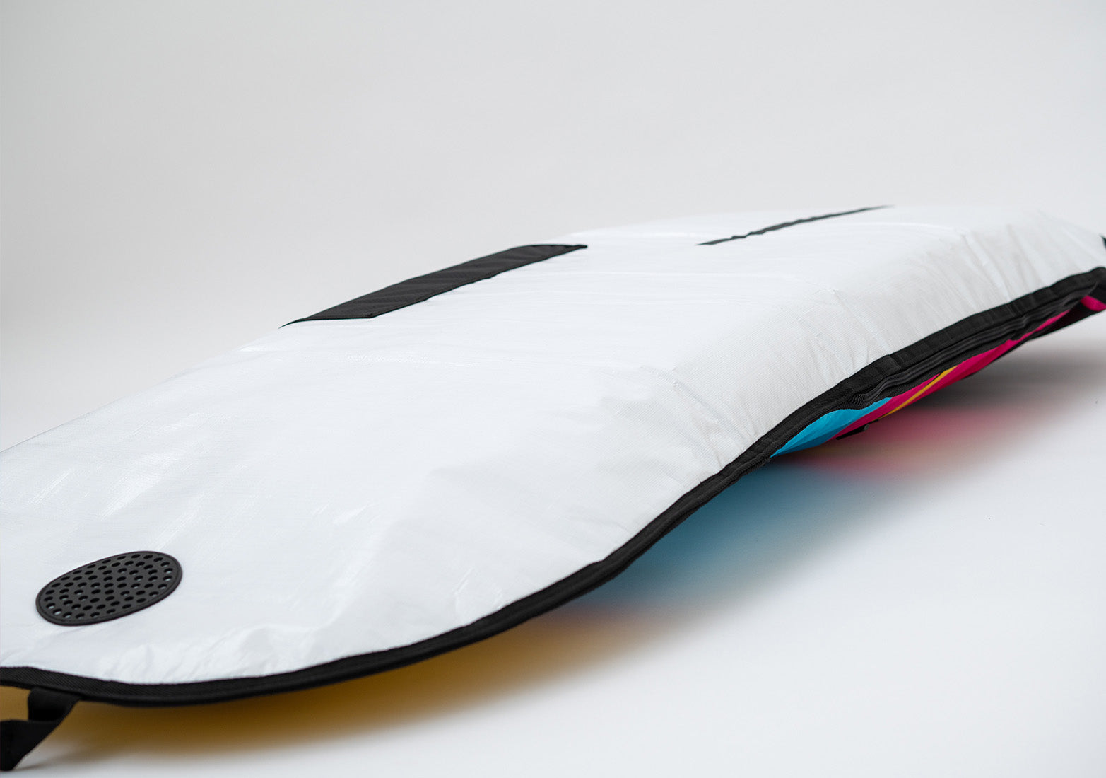 Our Rad Bag, a key highlight of the Rad Series, is a celebration of color and functionality. Crafted with the same commitment to quality as our FBC Day Bag, it combines strength, lightness, and innovative features. The top of the bag boasts an exclusive multi-colored Hex-Tech repellent material divided into three sections, perfectly complementing our ‘Bag Sack’ technology. This unique feature allows you to effortlessly carry your board on your back like a rucksack.
